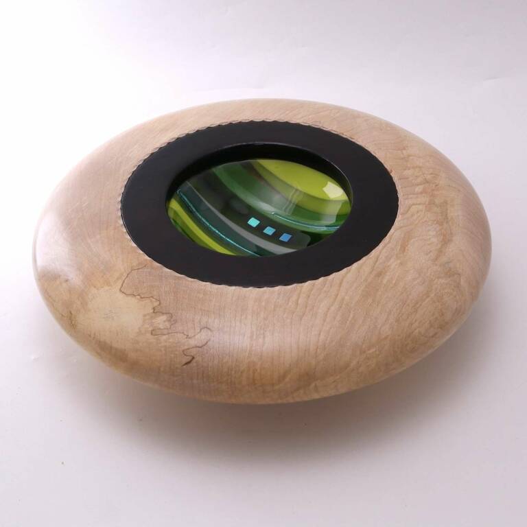 Fused glass and carved wood