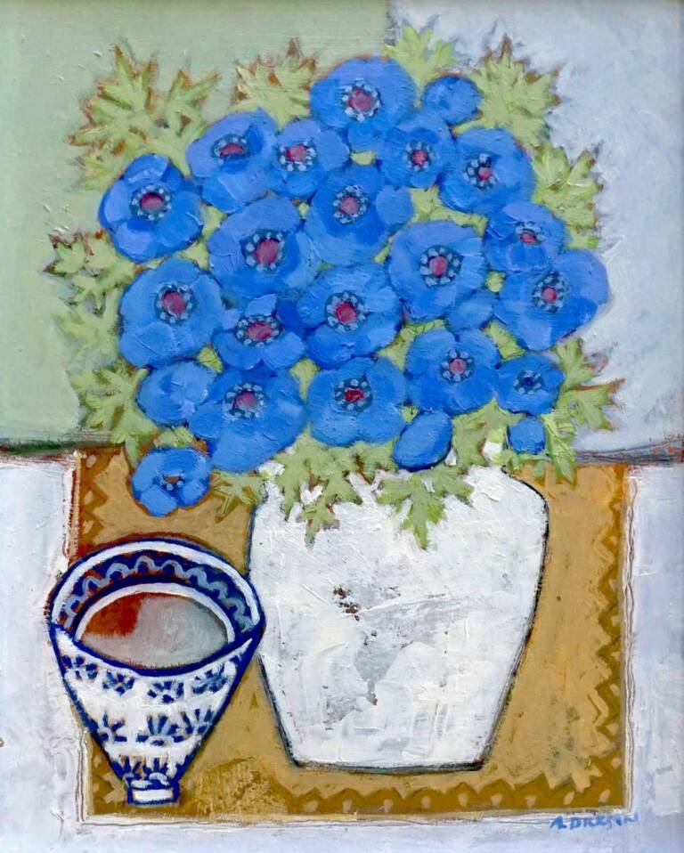 Blue Anemones and a Patterned Bowl
